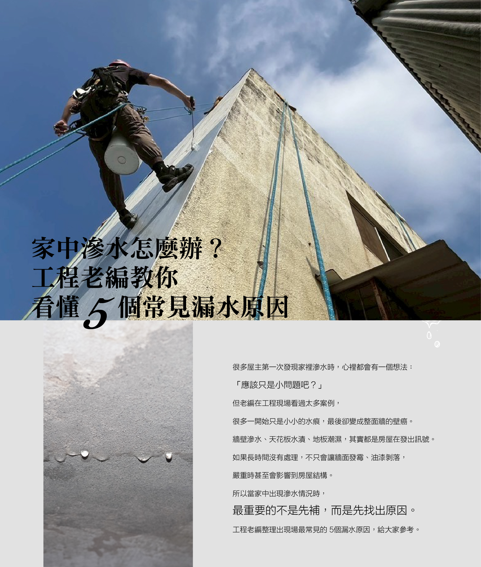 家中滲水怎麼辦?工程老編教你看懂5個常見漏水原因-專業防水工程公司|誠信|責任|專業